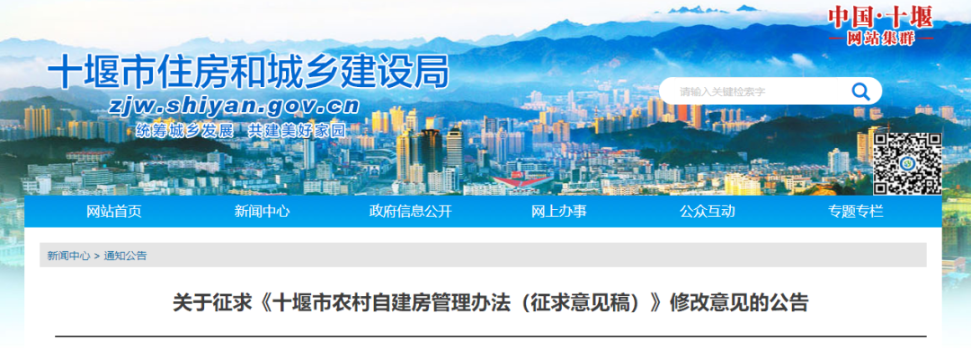 为认真贯彻落实习近平总书记对湖南长沙居民自建房倒塌事故的重要指示精神,深刻汲取教训,规范农村自建房管理,保障农村自建房质量和安全,根据市委市政府工作部署,我局起草了《十堰市农村自建房管理办法(征求意见稿)》,现面向社会公开征求意见,可在2022年6月20日前通过下列途径和方式提出意见。